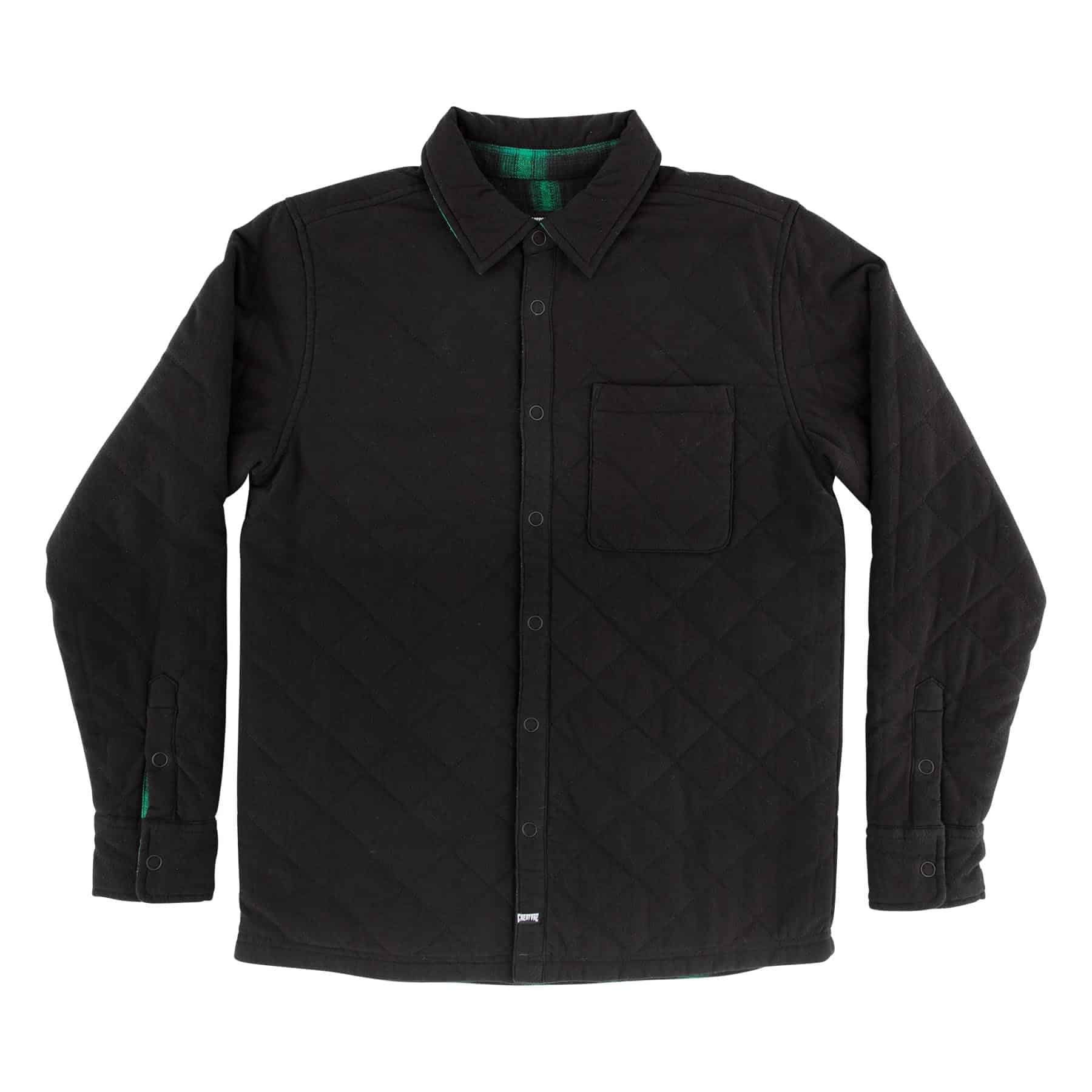 La jacket reversible de manga larga para hombre de Creature Switch, ligeramente aislada, cuenta con bolsillo de parche en el pecho y cierre frontal a presión y tapetas en la manga
