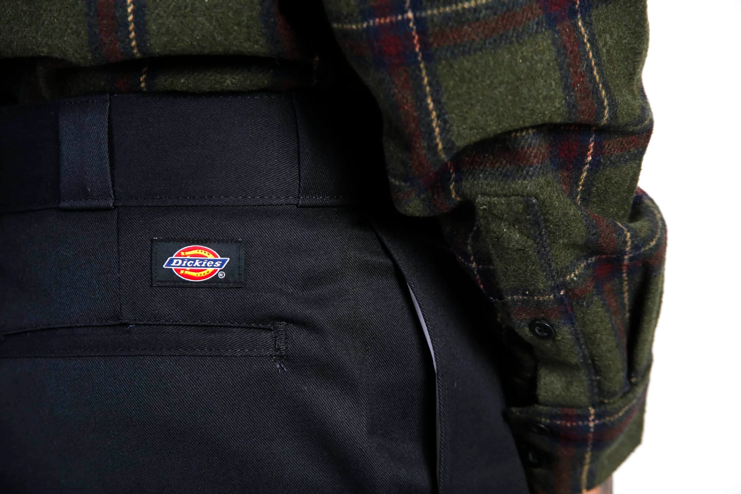 Dickies es conocida en la escena especialmente por los robustos pantalones de skate, que van desde varios cortes chinos hasta jeans. La raya distintiva y la tela resistente y muy duradera son típicas de los Dickies cortos o largos.